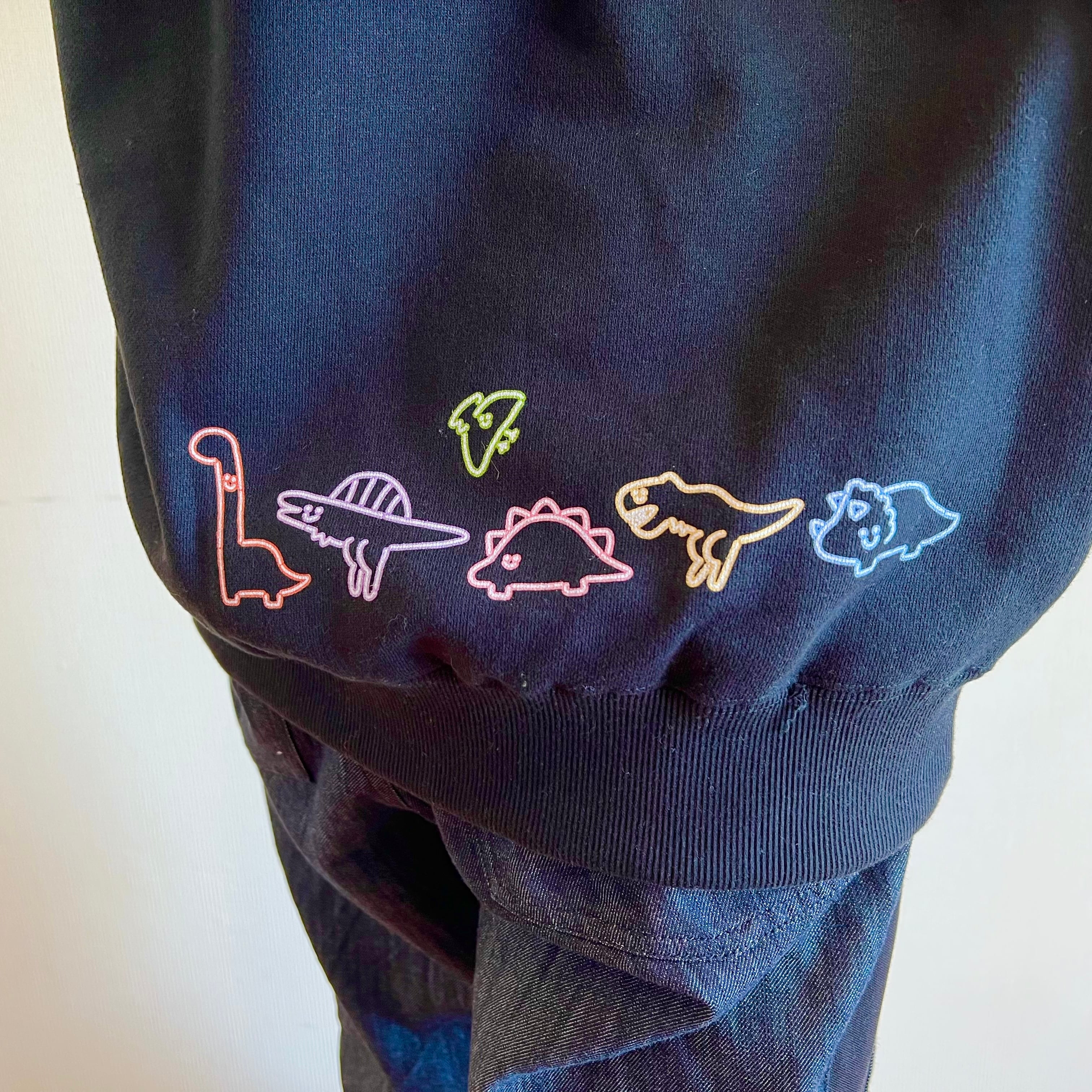 ワンポイントで背面下部に仲良く恐竜が並んでいます。